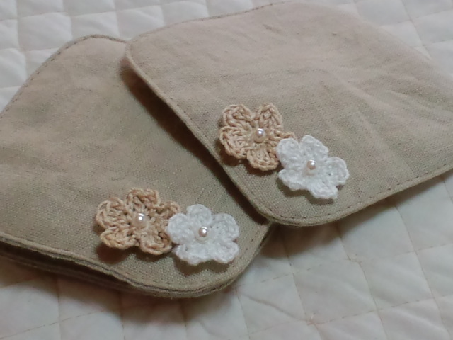 お花モチーフを編んでつけてみました。