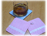 このコースターはベビーカー用フリルの余り部分を組み合わせて